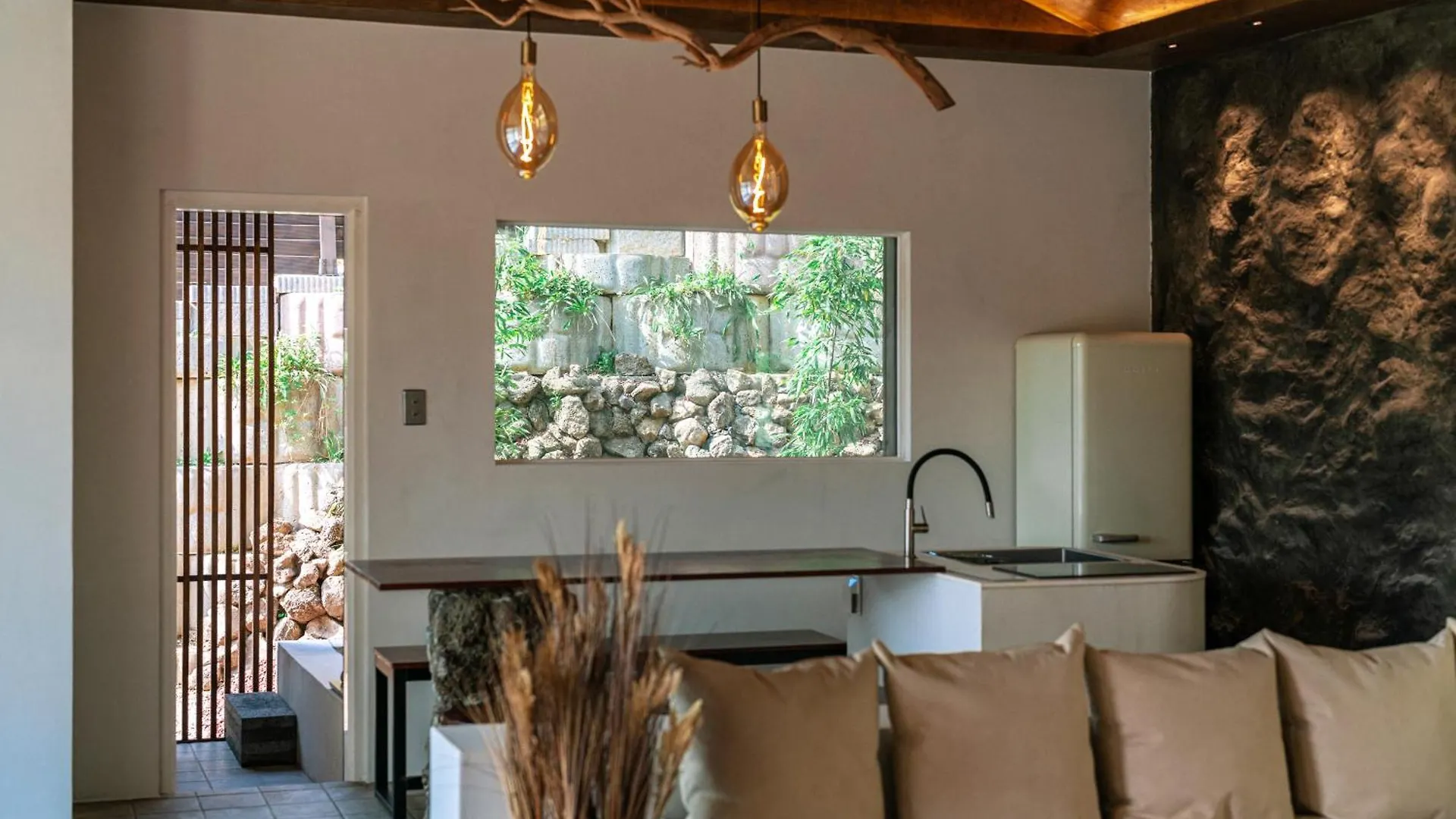 Stay Gaia villa has an equipped kitchenette which includes a refrigerator and kitchenware.